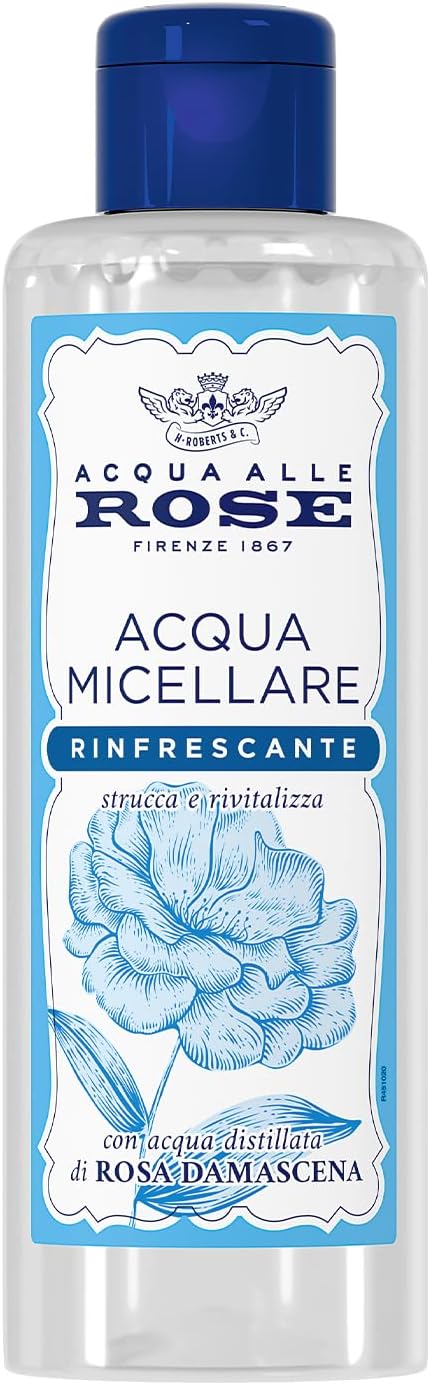 Acqua alle Rose, Acqua Micellare Rinfrescante per Tutti i Tipi di Pelle, Strucca e Deterge Viso, Occhi e Labbra, con Acqua Distillata di Rosa Damascena per Rivitalizzare, Senza Risciacquo, 200 ml