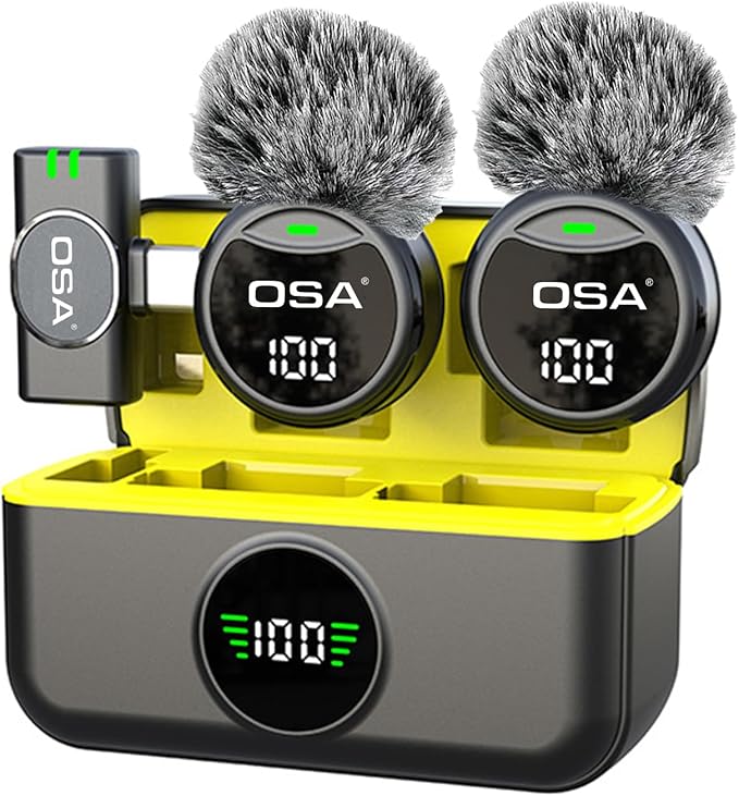 OSA Microfono Lavalier per iPhone15/16 e Android, mini microfono a spina USB-C, senza fili, batteria 40 ore per registrazioni video, interviste, podcast, YouTube, Vlog