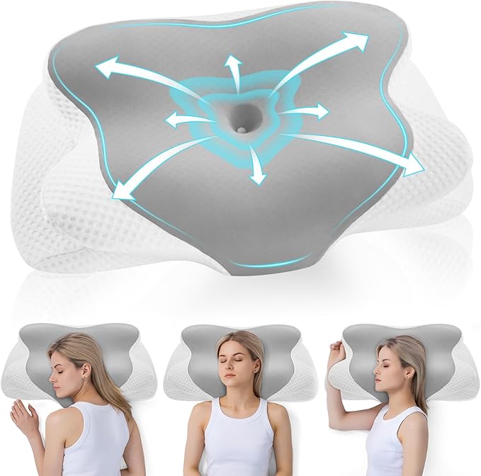 DONAMA Cuscino Cervicale per Dormire, Cuscino Ergonomico Cervicale per Dormitori Laterali, Supini e Proni, Cuscino per Cervicale con Federa Sfoderabile e Lavabile (Grigio Chiaro, 62x37x12 cm)