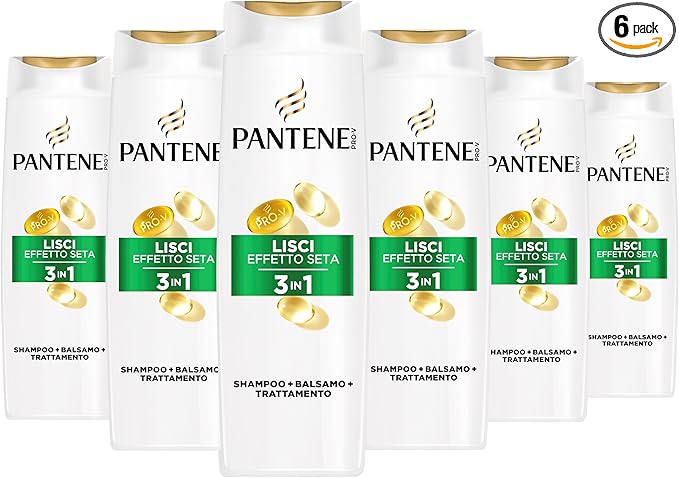Pantene Pro-V Lisci Effetto Seta Shampoo 3 in 1 300ml per Capelli Crespi e Opachi. Deterge, Districa e Cura i Capelli allo Stesso Tempo. Senza Olio Minerale e Coloranti. Tecnologia Active Nutri-Plex