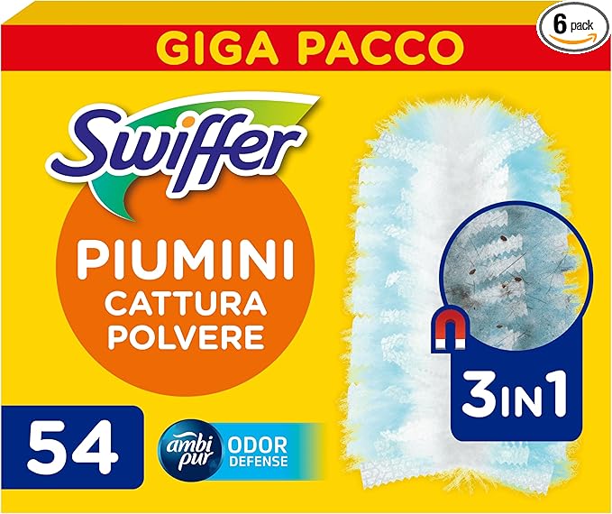 Swiffer Duster Piumini Cattura Polvere, 54 Piumini, Cattura e Intrappola Polvere e Sporco, Raggiunge I Punti più Difficili della Casa, Giga Formato