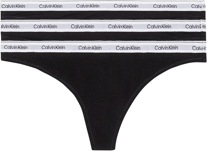 Calvin Klein Perizomi Donna Confezione da 3 Modern Logo Tanga, Nero (Black/Black/Black), L