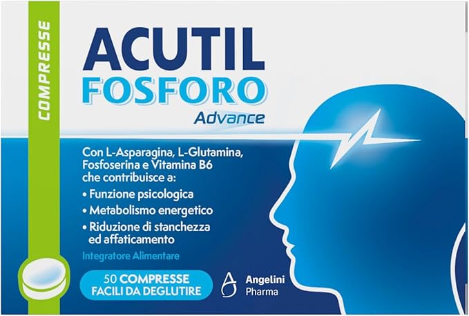 Acutil Fosforo Advance, Integratore Alimentare con Vitamina B6, L-Asparagina, Fosfoserina e L-Glutammina, Contribuisce a Rimanere Concentrati e a Ragionare con la Giusta Lucidità, 50 Compresse