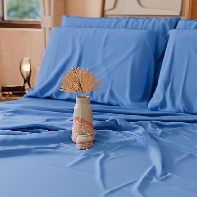 Utopia Bedding - Set Lenzuola Letto Matrimoniali 4 Pezzi 180x200 cm - Spazzolata Poliestre di Microfibra - Oeko-Tex Certificato - Lenzuolo con Angoli, Lenzuolo Piatto e 2 Federe 50x75, Blu Navy