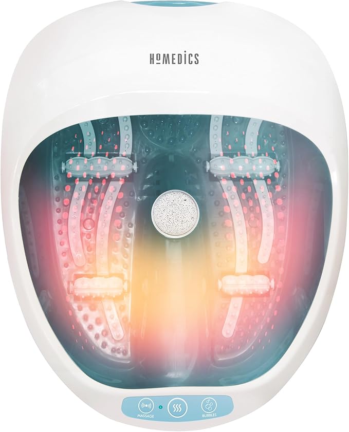 Homedics Pediluvio Massaggiatore Piedi 4 in 1 - Idromassaggio, Magnetoterapia, Vibrazione, Mantenimento Temperatura 40°C - Taglia Max 47, Bianco/Azzurro