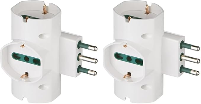 VIMAR RI.00315.B Adattatore elettrico multiplo sfalsato verticale, 3 prese universali con protezione bambini SICURY, spina (grande) standard italiano tipo S17 2P+T 16 A (Confezione da 2)