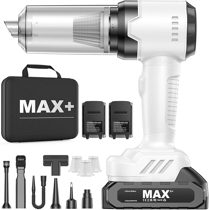 Aspirabriciole Senza Fili, 28000PA Aspirapolvere per Auto, 2er 7500 mAh Aspirapolvere Portatile Ricaricabile, 3 in 1 Aspirapolvere Potente per PC, Auto, Divano, Animale Domestico, Cucina(Bianco)