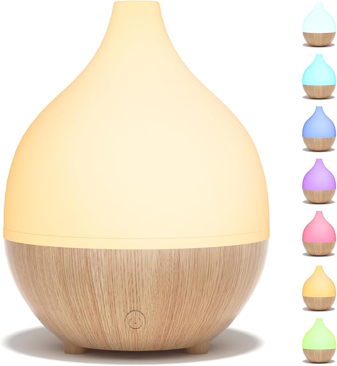 SALKING Diffusore di Oli Essenziali, 100ml Diffusore aromatico a grana di legno, Ultrasuoni Aromaterapia Diffusore con Luce bianca calda, Diffusore per Oli Essenziali Senza BPA