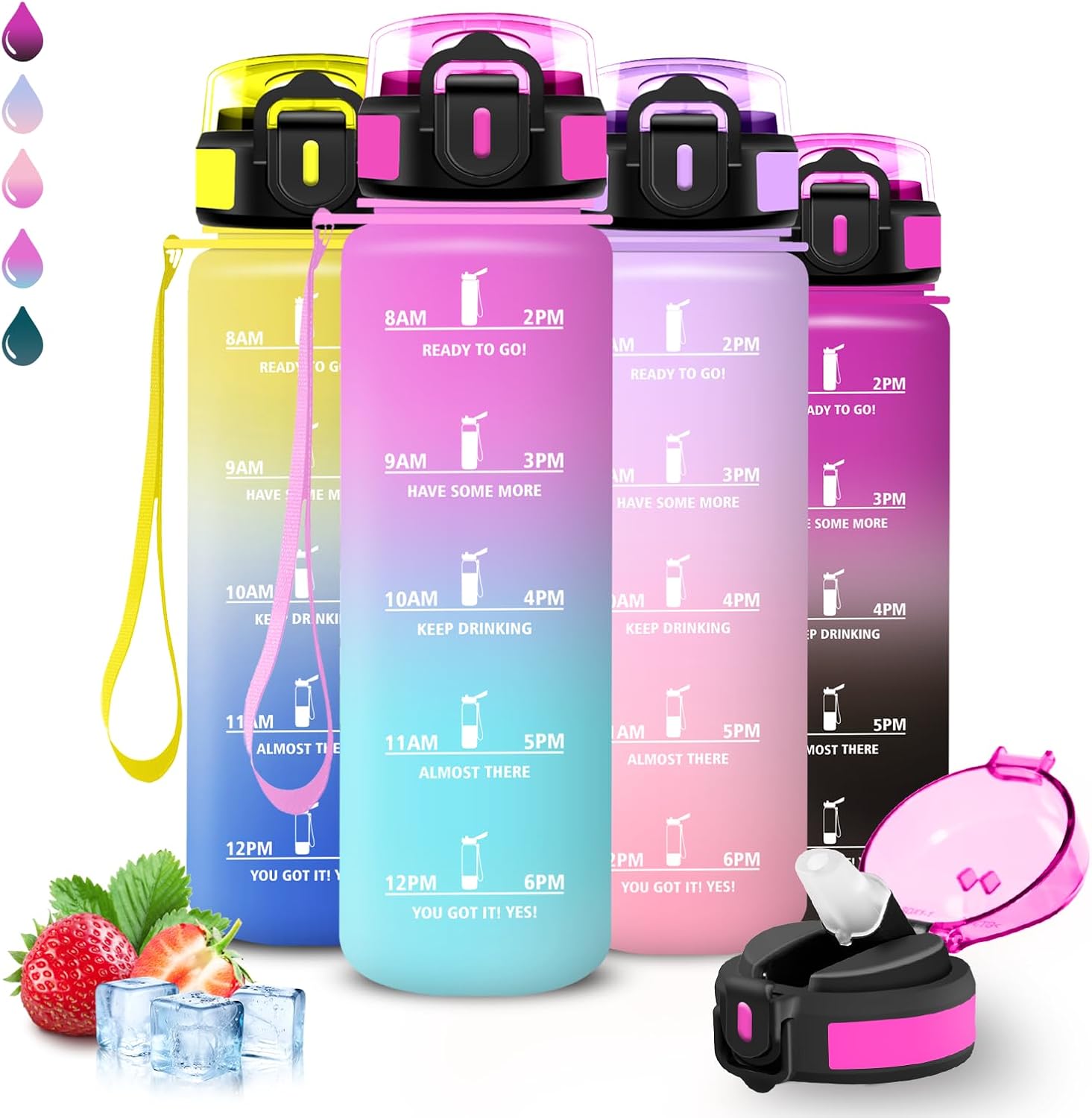 Borraccia 1 litro, Borraccia con Cannuccia, Senza Perdite, Water Bottle Motivazionale, Facile da Pulire, Bottiglia con Orari per Bere, Bottiglie Acqua Con Slogan Motivazionale, per Ciclismo, Campeggio
