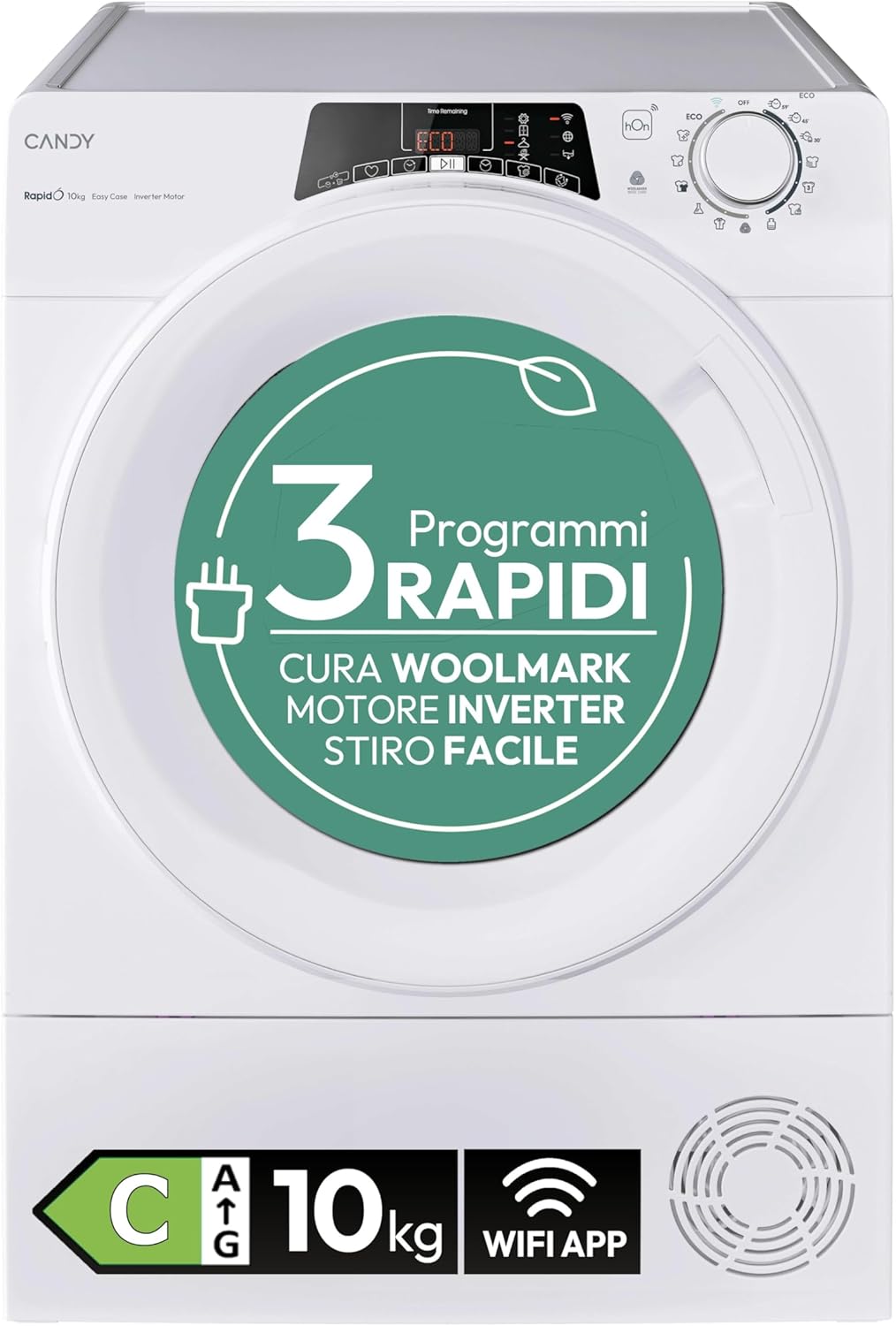 Candy RapidÓ RO EH10N3TE-S Asciugatrice, 10 kg, Wi-Fi, 85 x 59.6 x 58.5 cm