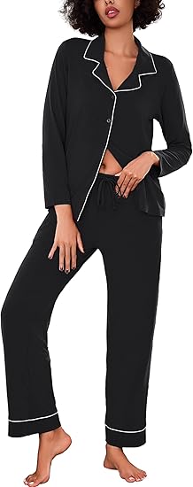 Pigiama Donna Invernale Aperto Davanti con Bottoni Cotone a Maniche Lunghe Pigiami Due Pezzi Sciolto Accogliente per Casa e Casuale Ospedale