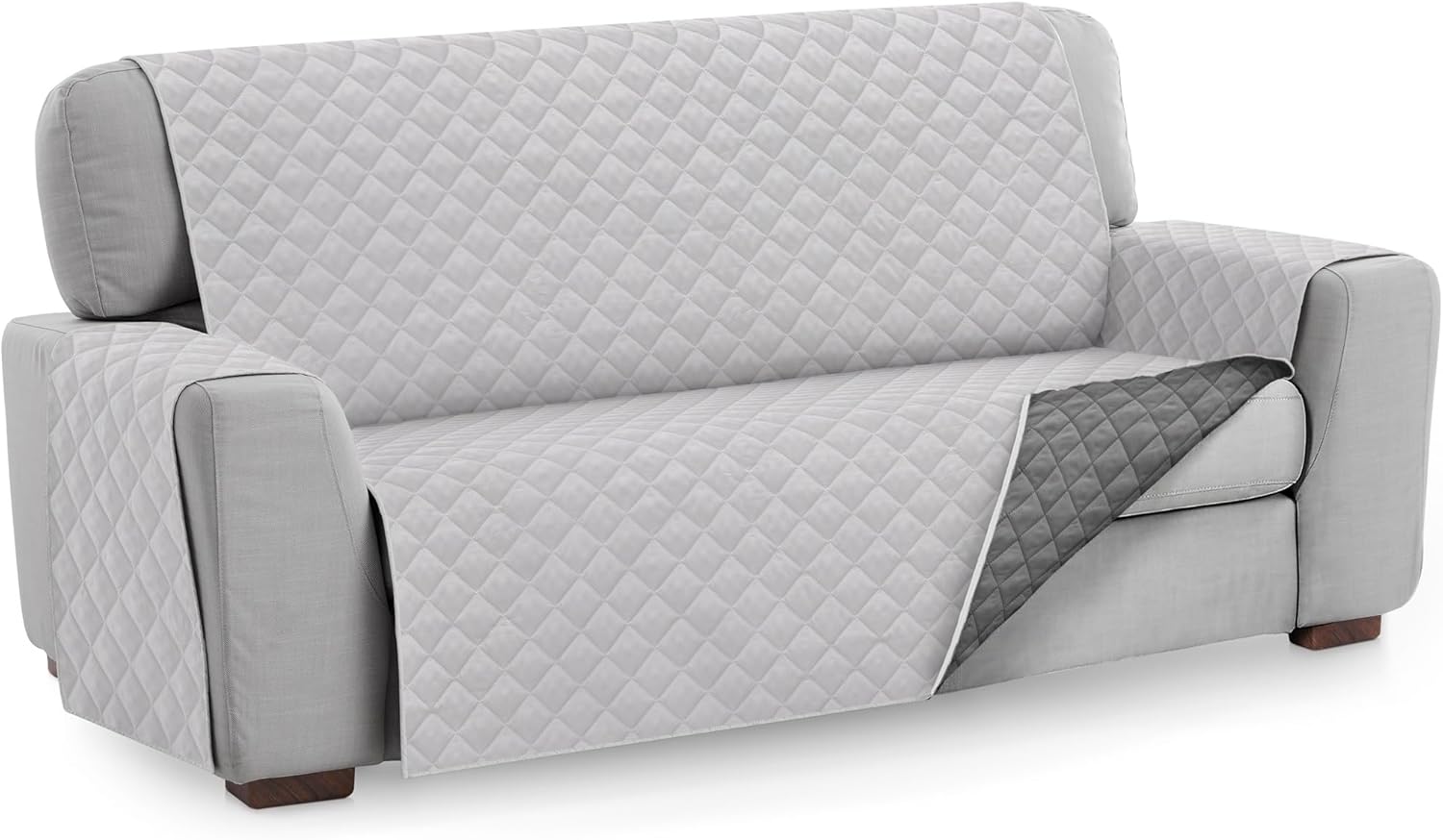 Textilhome Copridivano Malu 4 Posti (200cm) – Salvadivano Trapuntato Reversibile Universale, Protezione Antigraffio, Fodera Imbottita per Divano, Colore Grigio Chiaro
