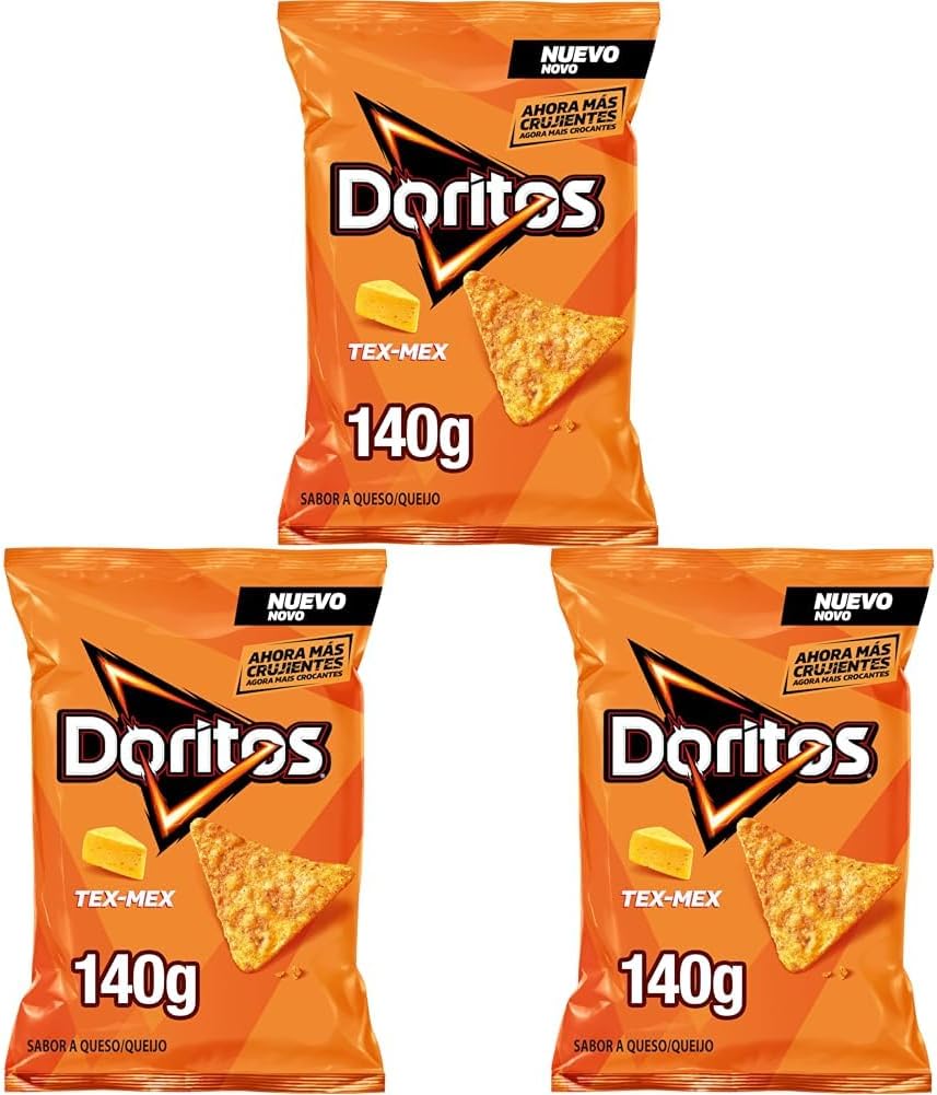 Doritos Tex Mex, Snack di Mais al Gusto Formaggio, 140g (Confezione da 3)